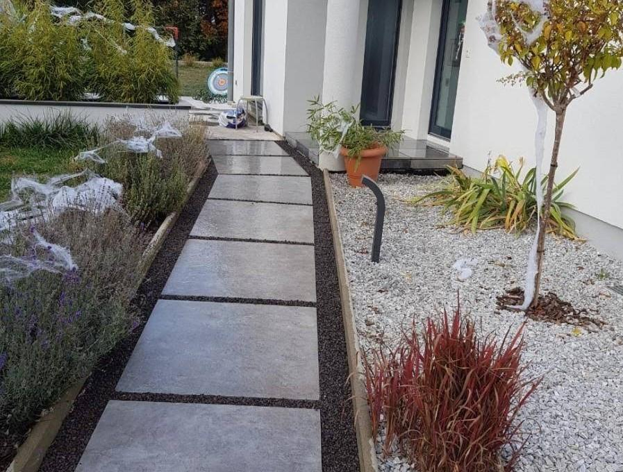 L'entrée de votre logement, à l'instar de celle présentée ici, en dallage extérieur à Erstein est le premier accueil de vos convives. Qu'elle soit nettement caractérisée ou dans le prolongement de l'allée, l'entrée de domicile doit être empruntable et accessible, et en premier lieu, garantir aux invités d'arriver aisément.