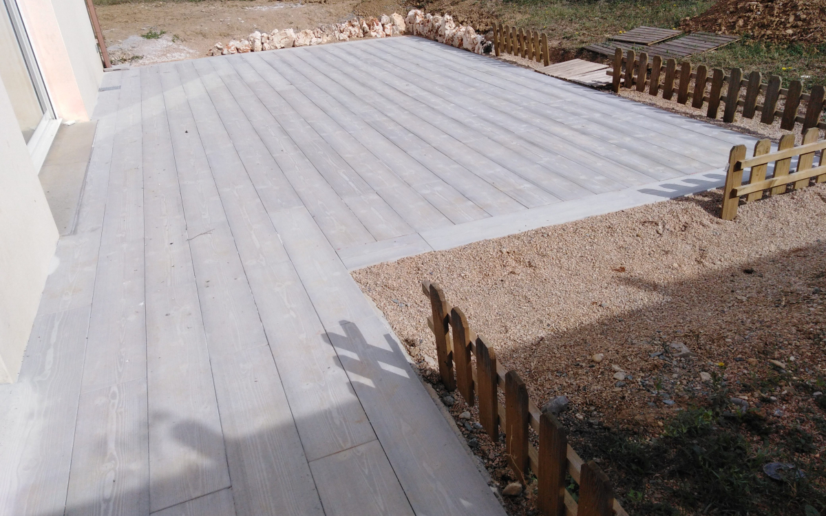 Un des lieux les plus importants de votre maison, la terrasse est la continuité de la maison à l'extérieur. C'est un lieu, comme celle présentée ici en b?ton imitation bois à GAILLAC qui doit pouvoir héberger une table et des chaises, mais aussi du mobilier comme un transat. En fonction du style de votre extérieur, une multitide d'aménagements sont possible pour la terrasse.