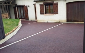 Les cours, à l'instar de celle-ci présentée à en enrobé noir à chaud ont un grand nombre de rôles, elles peuvent être utilisées d'espace pour vos enfants, de zone de stationnement, de voie de circulation... Pour harmoniser ou délimiter ces endroits, quelques solutions sont possibles : un grand nombre de selon le besoin, le même revêtement aux coloris variés, ou encore des bordures de pavés.